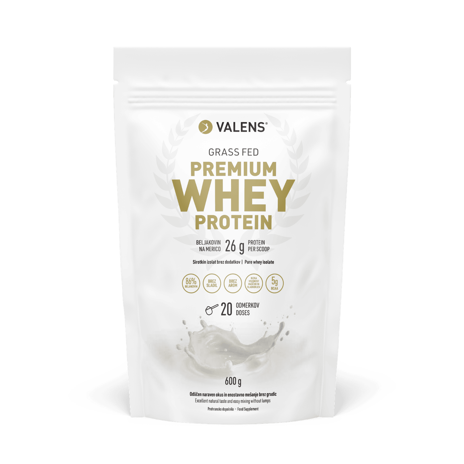A food supplement for preparing a protein drink with natural whey proteins. It contains a highly pure and easily digestible whey isolate with a high protein content and minimal amounts of fat and sugars. One scoop provides as much as 26 g of pure protein (including 5 g of BCAAs), which is an exceptionally high amount compared to similar products on the market.